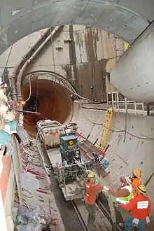 The West Side Combined Sewer Overflow Tunnel (also West Side Big Pipe) is a tunnel in Portland, Oregon, United States. It receives and stores overflow from the combined sewer system before it can reach the Willamette River. The main tunnel is 14 feet (4.3 m) in diameter and 3.5 miles (5.6 km) long for a capacity of 2,850,000 cubic feet (81,000 m3) and connects to dozens of smaller sewer overflow interceptors along the west side of the Willamette River.