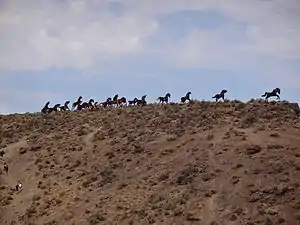 Grandfather Cuts Loose the Ponies (also known as the Wild Horse Monument) is a public art sculpture created by David Govedare in 1989–1990 and situated near Vantage, Washington. It consists of 15 life-size steel horses which appear to be galloping across a ridge above the Columbia River. Presented as a gift for the centenary of Washington's statehood, the sculpture was conceived as a memorial to the wild horses which once roamed the region. According to the Seattle Times, it is one of the most-seen public artworks in Washington state.