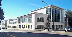In 1927, a two-story administration building was completed at 2325 Milvia Street (at the corner of Durant Avenue, across from the grounds of Berkeley High School). Designated a seismic hazard after the 1933 Long Beach earthquake, it was put to non-school purposes beginning in 1940[2] and was razed in 1946, the site becoming tennis courts for the high school.[3]