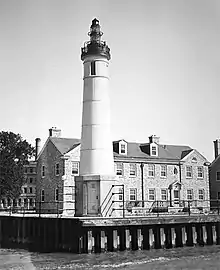 The Windmill Point Light was a lighthouse built in 1838 at the confluence of the Detroit River and Lake St. Clair in the U.S. state of Michigan. It was funded by a Congressional appropriation of $5,000 in March 1837.[1] The current structure, which dates from 1933,[1] has an octagonal base made of concrete which is one story tall, topped by a 33-foot cylindrical white steel-plate tower. The total height of the structure is 45 feet.[2] The first lighthouse keeper was John Martin, a veteran of the War of 1812.[3]