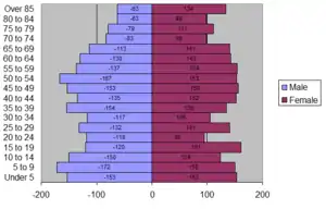 The median age in the city was 42.6 years. 23.2% of residents were under the age of 18; 6.8% were between the ages of 18 and 24; 23.1% were from 25 to 44; 25.8% were from 45 to 64; and 21.2% were 65 years of age or older. The gender makeup of the city was 48.2% male and 51.8% female.