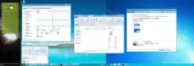 Two milestone releases of Windows 8 and one of Windows Server 2012 leaked to the general public. Milestone 1, Build 7850, was leaked on April 12, 2011.[21] It was the first build where the title of a window was written centered instead of aligned to the left. It was also probably the first appearance of the Metro-style font, and its wallpaper had the text shhh. let's not leak our hard work. However, its detailed build number reveals that the build was created on September 22, 2010.[22] The leaked copy was Enterprise edition, with other editions leaking later. In 2020, it was discovered that Metro existed in this build, after disabling the Redpill feature lockout. The start screen was very primitive, being a screen with a white background and gray tiles. The charms bar was also included, but was unusable. The OS still reads as "Windows 7". Milestone 2, Build 7955, was leaked on April 25, 2011. The traditional Blue Screen of Death (BSoD) was replaced by a new black screen,[23] although it was later reverted to a different blue color. This build introduced a new ribbon in Windows Explorer. The "Windows 7" logo was temporarily replaced with text displaying "Microsoft Confidential". Both builds 7850 and 7955 leaked alongside Windows Server 2012 build 7959. On June 17, 2011, build 7989 64-bit edition was leaked. It introduced a new boot screen featuring the same Betta fish as the default Windows 7 Beta wallpaper, which was later replaced, and the circling dots as featured in the final build (although the final version comes with smaller circling dots throbber). It also had the text Welcome below them, although this was scrapped.[24] The boot screen was not new to this build though – it came from build 7973, a slightly earlier build. Most of these leaks "hid" the main Metro UI features that were to come in the aforementioned Redpill feature lockout in order to prevent relevant leaks. An unlocker tool named Redlock was necessary to reveal the new Metro UI as well as the redesigned Start Screen, Lock Screen and apps.[25] Although several other unlocker tools have tried to replicate this patch as closely as possible before Redlock, it is the most accurate, supporting the enabling of builds' Metro UI from 7814-8056. It also worked on the Developer Preview.