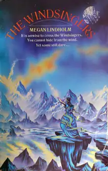 In the US, Harpy's Flight was published by Ace Books in 1983. Since its protagonists Ki and Vandien had appeared earlier in "Bones for Dulath", the book was released under the same byline as the short story, Megan Lindholm. The author said she had "mixed feelings" about her new byline, under which she would continue to publish novels for the next decade.[10] Ki and Vandien featured in three further books that are known along with Harpy's Flight as the Windsingers series and also as the Ki and Vandien quartet.[4][11] According to Lindholm, all four novels can be read independently.[12] The next two books followed in 1984: The Windsingers and The Limbreth Gate, both illustrated by Kinuko Y. Craft. The Windsingers is also the title of a UK omnibus of the first three books, published in 1985 by Corgi Books. The fourth volume Luck of the Wheels was released by Ace in 1989, with a cover drawn by Richard Hescox.[4]