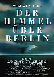 Wings of Desire (German: Der Himmel über Berlin, pronounced [deːɐ̯ ˈhɪml̩ ˈʔyːbɐ bɛɐ̯ˈliːn] ⓘ; lit. 'The Heaven/Sky over Berlin') is a 1987 romantic fantasy film written by Wim Wenders, Peter Handke and Richard Reitinger, and directed by Wenders. The film is about invisible, immortal angels who populate Berlin and listen to the thoughts of its human inhabitants, comforting the distressed. Even though the city is densely populated, many of the people are isolated or estranged from their loved ones. One of the angels, played by Bruno Ganz, falls in love with a beautiful, lonely trapeze artist, played by Solveig Dommartin. The angel chooses to become mortal so that he can experience human sensory pleasures, ranging from enjoying food to touching a loved one, and so that he can discover human love with the trapeze artist.