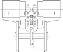 After developing the successful Buchli drive at Brown, Boveri & Cie (BBC), Buchli moved to SLM at Winterthur in 1924, where he designed the universal drive. It was characterised by double gearbox, which enabled the transmission ratio to be selected freely within a wide range.[1] Two coaxially opposed motors were arranged in the frame above each drive axle. The driving wheels were driven by a double gearbox, the second being connected centrally to the driving wheels by means of a universal joint.[2]