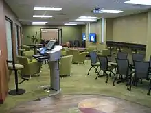 The Pablo Center at the Confluence is a building in downtown Eau Claire used for a variety of showings and performance art displays. The center is available for community use, however it is also used by the University for its music and theatre arts students.[92] Inside of the center are the Jamf and RCU theatres, two of the largest performing spaces available to college students in the nation, light and sound projection labs, recording studios, and several art galleries.[93] Often, the works of Blugolds are featured in their galleries.[93]