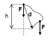 For convenience let the trajectory be along the X-axis, so X = (d, 0) and the velocity is V = (v, 0), then RV = 0, and FV = Fxv, where Fx is the component of F along the X-axis, so