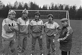 Sel. Netherlands nat. football team, 13 March 1984. From left: Hoekstra, Kieft, Van der Gijp, Holverda and Rijvers Photo: Marcel Antonisse (Anefo)