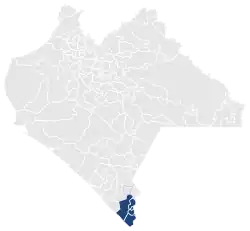 The Twelfth District of Chiapas is located in the extreme south of the state and comprises the municipalities of Frontera Hidalgo, Metapa, Suchiate, Tuxtla Chico and three-quarters of the municipality of Tapachula (the northern quarter of that municipality is in the Eleventh District).[1]