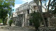 The name Xtampak comes from a Maya meaning "old / ancient walls". It is a very old site. The cities origins date back to 400 BC. The top of the hill has been aligned and surrounded by falling terraces intended for cultivation. The city grew by 850 years, reaching its peak of development between 550 and 950. It was planned and beautifully decorated, and contributed to this undoubtedly specific location of the city: it lay in a place where interacted Chenes architectural styles and Puuc. Thanks in Santa Rosa Xtampak find magnificent monuments showing the typical features of each of these styles. Xtampak was the historical capital of the Chene Maya people.[1] The city is built on a natural elevation with a flattened and divided summit, it covers an approximate area of 9 square kilometers. Xtampak had over ten interlocked ceremonial plazas. During its golden age, the city was inhabited by 10,000 people. The buildings have a marked Chenes style, although there are some structures with a Puuc influence.[2]