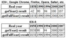 - JavaScript was changed due to concerns over the Y2K bug, and the return value for years changed and thus differed between versions from sometimes being a four digit representation and sometimes a two-digit representation forcing programmers to rewrite already working code to make sure web pages worked for all versions.[29][30]