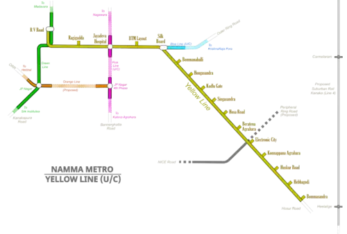 - ↑ Staff Reporter. "Electronics City inches closer to being on metro map". The Hindu. Retrieved 11 December 2016.