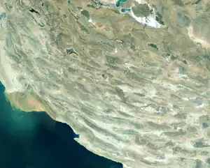 The Zagros fold and thrust belt (Zagros FTB) is an approximately 1,800-kilometre (1,100 mi) long zone of deformed crustal rocks, formed in the foreland of the collision between the Arabian Plate and the Eurasian Plate. It is host to one of the world's largest petroleum provinces, containing about 49% of the established hydrocarbon reserves in fold and thrust belts (FTBs) and about 7% of all reserves globally.[1]