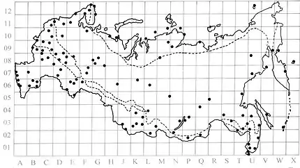 By 1933 there were 15 state zapovedniks in Russia,[15] and by 1995, there were 115. The average area of new zapovedniks declined from 780 km2 in 1916–25 to 110 km2 in 1936–45, and then rose to 5,060 km2 in 1986–95.[16] In 2007 there were 101 operating zapovedniks, reflecting a small number of new ones opened since 1995, but also two periods of closures and contraction of the system. The first of these was planned by Aleksandr Malinovskii; it was carried out in 1951 with a view to turning the zapovedniks into "commercial-and-research" institutions as well as releasing substantial areas of protected forest for commercial exploitation.[17] Over the next 10 years the zapovednik system recovered somewhat, but in 1961 Nikita Khrushchev criticized it, famously referring to a film about them [18] in which a scientist was shown watching a squirrel gnawing a nut.[19] Six zapovedniks were closed and others were amalgamated or reduced in area.[20]
