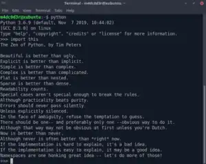 The Zen of Python output in a terminal