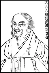 Zhanran (Chinese: 湛然; pinyin: Zhànrán; Wade–Giles: Chan-jan; 711-782), sometimes called Miao-lo[1] (or Miaole) was the sixth patriarch of the Tiantai school of Chinese Buddhism and helped to revive the school's proéminence after a period of decline.[2] His lay surname was Qi 戚 and he was also known as Jingqi 荊溪 after his birthplace (in modern-day Yixing 宜興 county, Jiangsu province). Early in his monastic training, traditional biographies stated that he thoroughly studied the Vinaya in Four Parts before being ordained by precepts master T'an-i (曇一, 692-771).