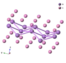 In chemistry, a Zintl phase is a product of a reaction between a group 1 (alkali metal) or group 2 (alkaline earth metal) and main group metal or metalloid (from groups 13, 14, 15, or 16). It is characterized by intermediate metallic/ionic bonding. Zintl phases are a subgroup of brittle, high-melting intermetallic compounds that are diamagnetic or exhibit temperature-independent paramagnetism and are poor conductors or semiconductors.[1]