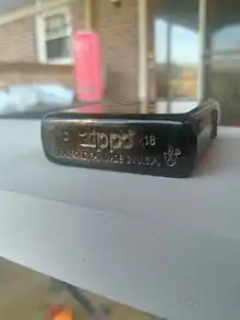 A Zippo lighter is a reusable metal lighter produced by Zippo Manufacturing Company of Bradford, Pennsylvania, United States.[1] Thousands of different styles and designs have been made in the nine decades since their introduction, including military versions for specific regiments. Zippo lighters have been sold around the world and have been described as "a legendary and distinct symbol of America."[2][3] In 2012, the company produced the 500-millionth unit.[4][5] Since the company's inception, Zippo lighters have been primarily manufactured in the United States, although the company ran an operation from 1949 until 2002 in Niagara Falls, Ontario, Canada.[6]