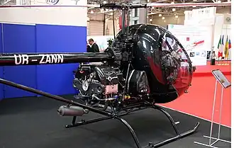 Оснащён поршневым бензиновым двигателем EJ-25 «Subaru», мощностью 156 л. с.(110 кВт) работающий на автомобильном бензине с октановым числом 95 и доработанный под данную конструкцию. Мощность от двигателя передается на приводной вал главного редуктора через ременную передачу с обгонной муфтой. Несущий винт состоит из трёх лопастей. Лопасти выполнены из композиционных материалов.