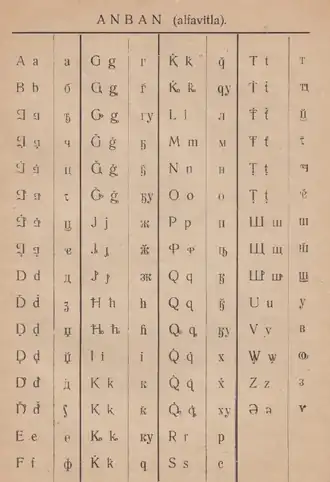 Алфавит переводческого комитета имел следующий вид[2]: