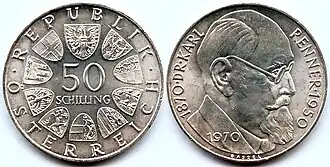- ↑ Austrian 50 Schilling Coins (нем.). сайт austriancoins.com. Дата обращения: 16 октября 2011. Архивировано 17 февраля 2012 года.
