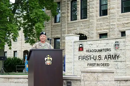 «Проходил службу в качестве командира 2-го кавалерийского полка, 11-го бронекавалерийского полка, начальника 7-го армейского учебного командования, командующего 3-й пехотной дивизией, командующего 1-й армией, заместителя начальника штаба по операциям, планированию и обучению Командования армейских сил США.
