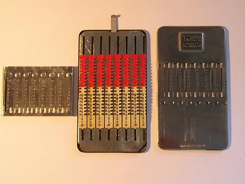 Существовали компактные счислители — у них не было ручки сброса, взамен рейки высовывались из корпуса. Их надо было задвинуть ладонью.