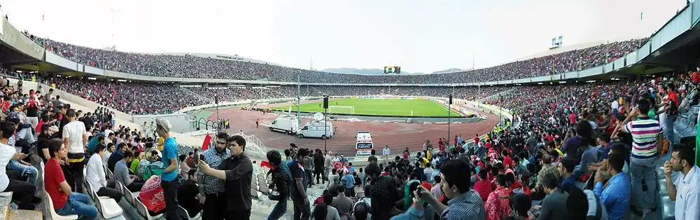 Панорама стадиона «Азади» во время тегеранского дерби между клубами «Персеполис» и «Эстегляль», 2013 год.