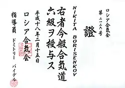 | 5-й дан | го-дан | сидоин | 5 лет после 4 дана | развитие айкидо в региональном масштабе | |