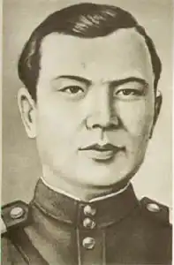 - Бюсты Героя установлены в школе села Таргын и в городе Полоцке.