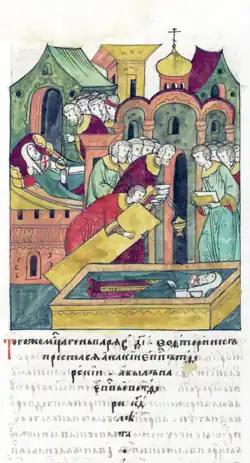 Посвящение Акакия в еписокпы тверские (миниатюра Лицевого летописного свода)
