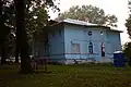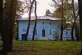 Деревянный жилой дом с антресолями сохранился до настоящего времени. По всей видимости, он был построен в 1840-х годах. Одноэтажное здание обшито тёсом и обработано «под камень». Двусветный главный зал обращён к пейзажному липовому парку, который также сохранился. Архитектурный стиль здания — поздний классицизм с псевдоготическими элементами, отражающие формы соседней усадьбы Санти. Некоторые детали, в том числе квадратные столбы клуатров вместо колонн, отходят от классических норм[3].