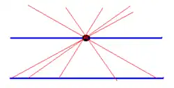 - При продолжении двух прямых от точки их пересечения расстояние между ними неограниченно возрастает[13].