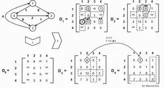 - ↑ Chan, Timothy M. (January 2010), More algorithms for all-pairs shortest paths in weighted graphs, SIAM Journal on Computing, 39 (5): 2075–2089, doi:10.1137/08071990x.