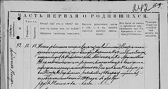 Исходя из оригинала метрической записи о рождении и крещении, следует считать, что известная из некоторых источников[4] дата рождения 29 июня (12 июля) 1914 года является ошибочной.