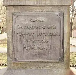 Торжественное открытие Александровской колонны состоялось 18 сентября 1894 года — в один день с памятником Екатерине II[4][5]. Монумент был посвящён 25-летию с начала царствования Александра II. Парк, в котором была установлена колонна, получил название Александровского.