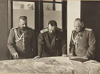 Михаи́л Васи́льевич Алексе́ев (3 [15] ноября 1857, Вязьма — 25 сентября [8 октября] 1918, Екатеринодар) — русский военачальник. Участник русско-турецкой (1877—1878) и русско-японской (1904—1905) войн, в годы Первой мировой войны — начальник штаба армий Юго-Западного фронта, главнокомандующий армиями Северо-Западного фронта, начальник штаба Верховного главнокомандующего (с августа 1915 года). Генерального штаба генерал от инфантерии (24 сентября 1914 года), генерал-адъютант (10 апреля 1916 года). Во время Февральской революции выступил за отречение Николая II от престола.