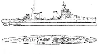 Заказ на строительство крейсера поступил в 1928 году. Закладка на стапеле состоялась 16 апреля 1928, спуск на воду прошёл 23 августа 1930. Крейсер был оснащён бронёй толщиной от 20 до 40 мм, оснащён восемью 152-мм орудиями, шестью 100-мм орудиями и 16 пулемётами. Развивал скорость до 37 узлов при помощности в шесть котлов и две турбин в 95 тысяч л. с.