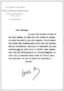 Письмо Альтюссера своему другу писателю Филиппу Соллерсу