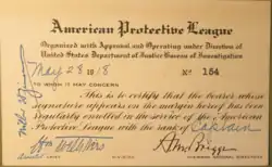 - ↑ "Fighting Germany’s Spies: VIII: The American Protective League, " The World’s Work, vol. 36, no. 4 (August 1918), pp. 393—401.