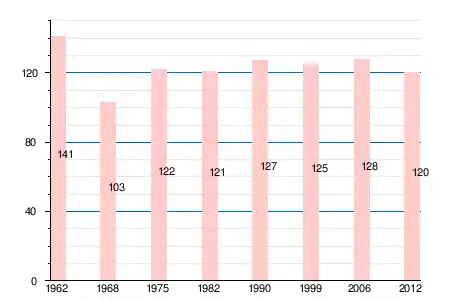 | 1962 | 1968 | 1975 | 1982 | 1990 | 1999 | 2006 | 2007 | 2011 | 2012 |
