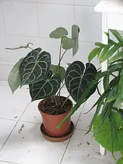 Популярное комнатное растение с темно-зелеными бархатистыми сердцевидными листьями, украшенными светлыми прожилками[3][4].