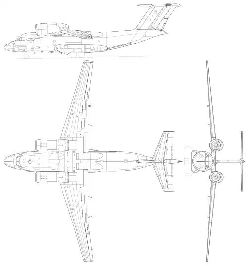 | Палубный вариант Ан-72 | Проектные работы велись в 1982—83 гг. Для базирования на авианесущем корабле машина имела складывающееся крыло. Взлёт должен был выполнятся с использованием трамплина, а посадка аэрофинишера. Для взлёта предполагалось оснастить самолёт 1—2-мя разгонными двигателями в хвостовой части и двумя пороховыми ускорителями. Проект не был реализован[11]. | |