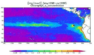 Похожий феномен наблюдается в экваториальной зоне. Восточные ветры (направленные на запад), дующие вдоль экваториальной зоны в Атлантическом и Тихом океанах, за счёт экмановского транспорта перемещают воду вправо (к северу) в Северном полушарии и влево (к югу) в Южном полушарии. Это приводит к дивергенции, в результате которой более плотные и богатые биогенами глубинные воды поднимаются к поверхности. За счёт этого продуктивность становится настолько высокой, что экваториальные районы Тихого океана можно определить из космоса по широкой линии высокой концентрации фитопланктона.
