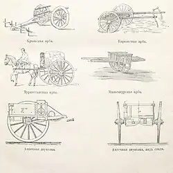 - ↑ Арба // Военная энциклопедия : [в 18 т.] / под ред. В. Ф. Новицкого … [и др.]. — СПб. ; [М.] : Тип. т-ва И. Д. Сытина, 1911—1915.