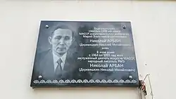 Мемориальная доска народному писателю Марий Эл, заслуженному деятелю искусств Марийской АССР Николаю Арбану на доме, где он жил и работал (г. Йошкар-Ола, ул. Первомайская, 158)В 2012 году установлены мемориальные доски в его родной деревне Арбаны Медведевского района Республики Марий Эл и на доме № 158 по ул. Первомайской Йошкар-Олы, в котором жил писатель[3].