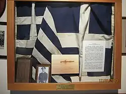 Стенд с фотографией Василия Арсланоглу, знаменем и фотографией канонерки «Арсланоглу». Исторический архив и музей Идры.