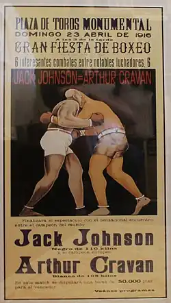 После начала Первой мировой войны Краван покинул Париж, чтобы избежать призыва на военную службу[7]. Во время остановки на Канарских островах в Барселоне был организован боксёрский поединок между Краваном и бывшим чемпионом мира Джеком Джонсоном, чтобы собрать деньги на проезд Артюра в Соединенные Штаты. Афиши матча рекламировали Кравана как «чемпиона Европы». Джонсон, который не знал, кто этот человек, нокаутировал Артюра после шести раундов. В своей автобиографии «Моя жизнь и битвы» Джонсон отметил, что Краван, должно быть, не тренировался.