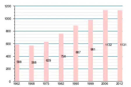 | 1962 | 1968 | 1975 | 1982 | 1990 | 1999 | 2006 | 2011 | 2012 |