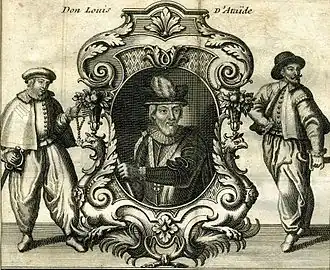 - ↑ Faria y Sousa, 1674, p. 636: «Dezia otro que Don Luis tenia miedo como los otros Hombres, pero que sobre todos los hombres le sabia encubrir».